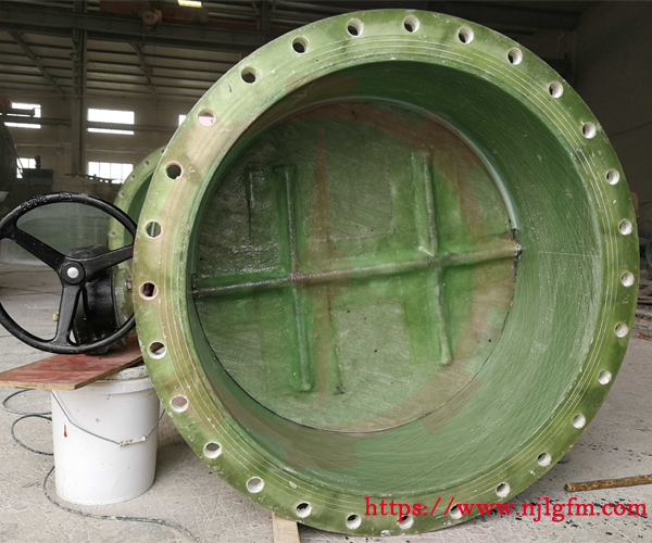 玻璃钢蝶阀把主要易腐蚀部件如阀体、阀板等设计为玻璃钢材料,玻璃钢部件所使用的纤维、纤维织物与树脂类型由蝶阀的工作条件确定。玻璃钢阀体的主体形状为直管状,它的结构特点是以一段玻璃钢直管为基础,然后再增加法兰、密封环制造而成。该种蝶阀具有耐腐蚀能力强、成本低廉、制造工艺简单灵活等特点。