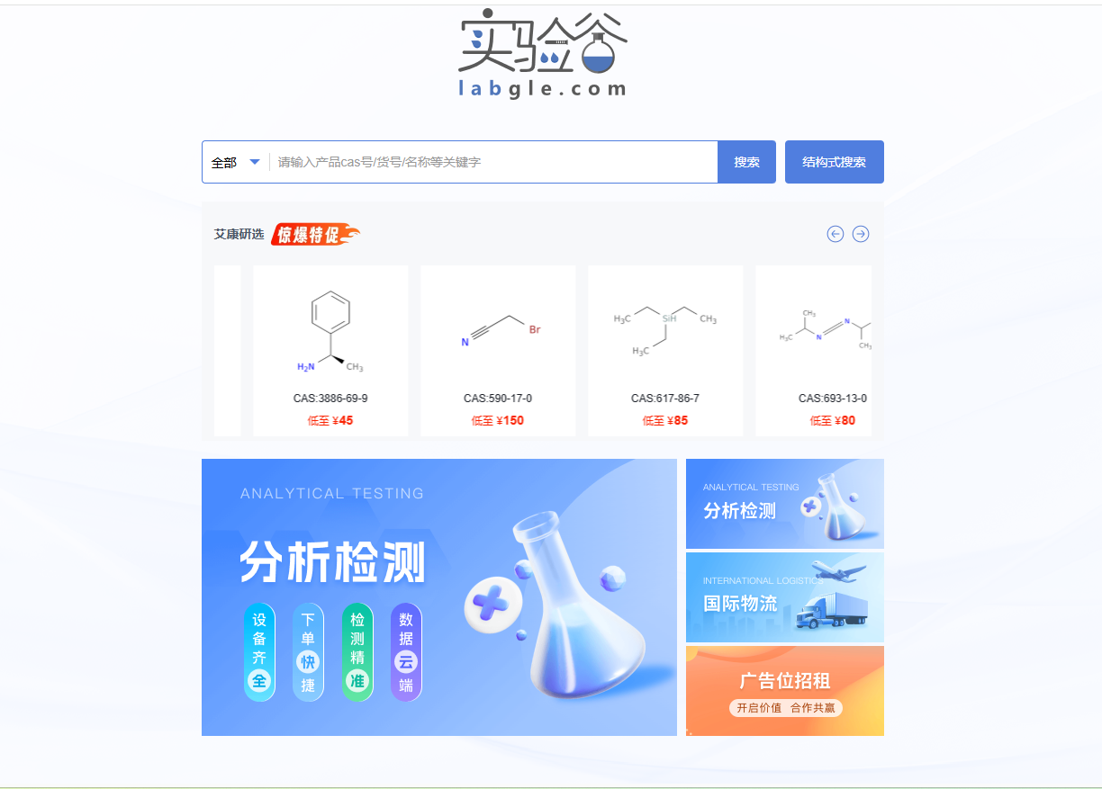 在实验谷平台上,可以通过CAS号、货号、中/英文名称、分子式、结构式等多种方式检索日常实验工作中所需的货品信息资源以及平台供应商信息(化工厂、试ji公司、化工企业、供求信息、价格等)。无论您是科研/学术研究人员、实验室,还是教育机构,实验谷都能满足您的实验需求。